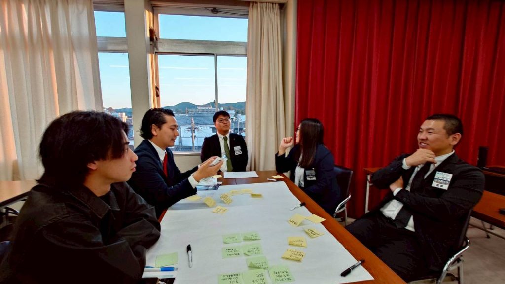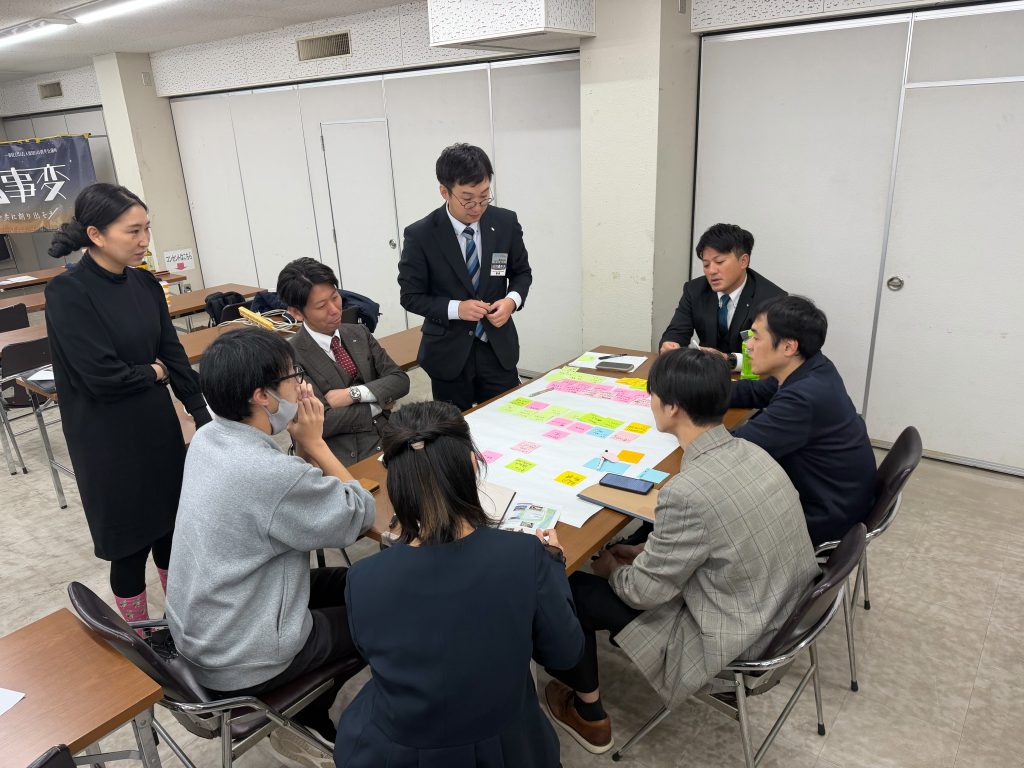 その後に、グループに分かれて、講演の感想を共有するとともに、豊臣秀長を活かした魅力発信の方法を話し合いました。グループワークでは、兄の豊臣秀吉の天下統一をナンバー2として陰で支え続けた豊臣秀長の人柄に着目し、まちや組織を陰で支え続けるナンバー2コンテストの開催などユニークなアイデアが出てきました。