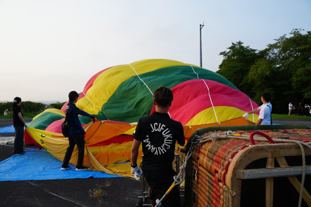 8月30日(土)の8月例会事業では、「空からお城と城下町を一望!ふるさとの魅力を肌で体感!気球体験会inふくちやま」を開催しました。